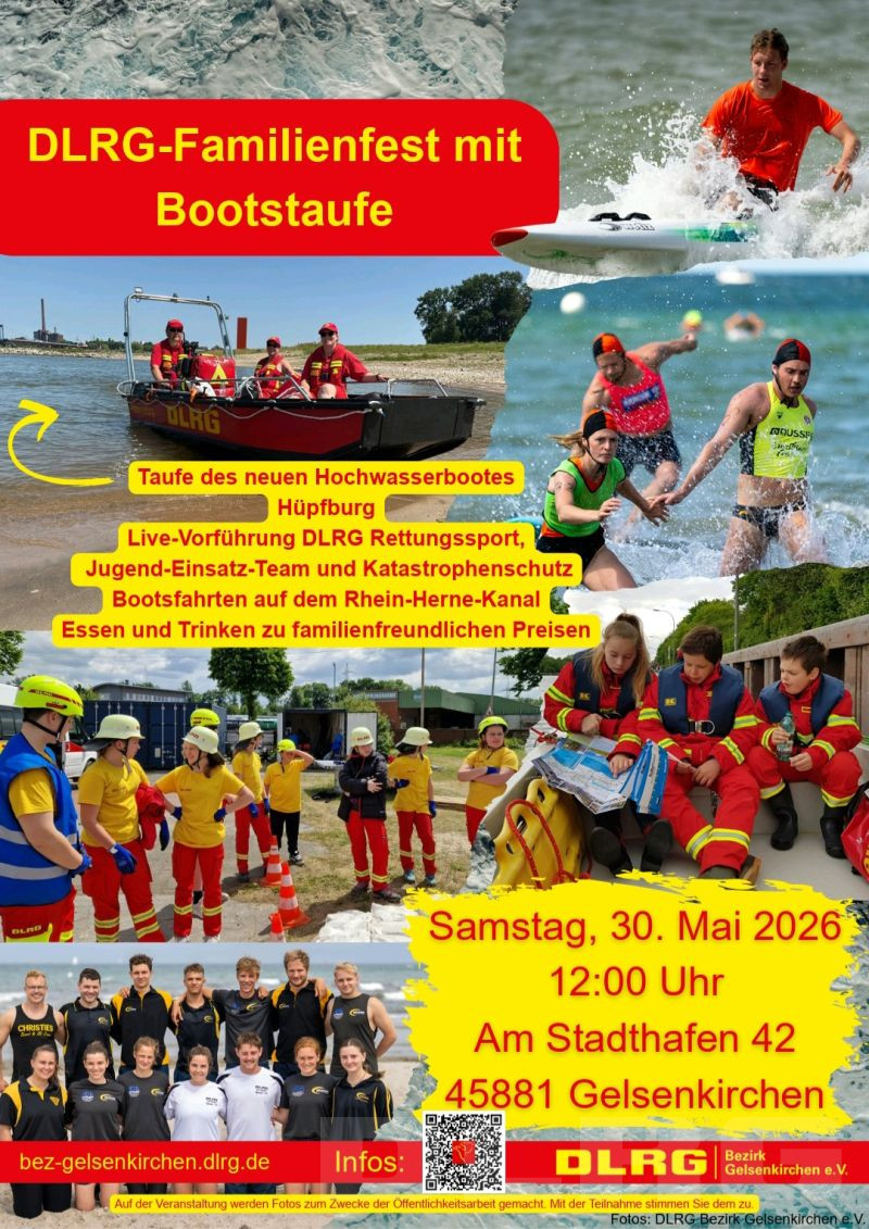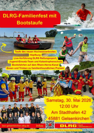 Am Samstag den 30. Mai 2026 möchten wir an unserer DLRG Wasserrettungsstation im Rahmen des diesjährigen Familienfestes unser neues Rettungsboot für den Hochwassereinsatz taufen. Das neue Motorrettungsboot kann in der örtlichen Gefahrenabwehr, im Katastrophenschutz sowie im Wasserrettungsdienst eingesetzt werden.